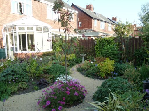 The Buddhist Mandala symbol inspired this series of interlocking circles which form the basis of this square back garden.
